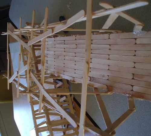 Bajo el puente de colocar piezas de triángulo para unir el puente. Esta parte del puente sería en el río este puente era realmente a prueba en un río.