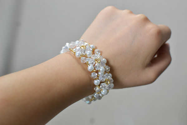 Este diseño de pulsera de cuentas flor es una exitosa combinación de los granos de cristal y las perlas. Como se puede ver en la imagen, es brillante por lado pero al mismo tiempo muestra un temperamento elegante. Este patrón de cuentas flor no es fresca ya hemos realizado varios diseños de joyería que aplicarán este patrón flor cuentas. De todos modos, sigue siendo un proyecto DIY sugerido para manos verdes y los amantes de la joyería DIY. Tienen un buen intento!
