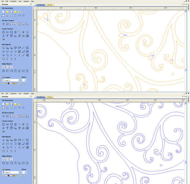 Ahora que tienes tu arte en coleccionables necesita limpiar un poco. Puede tener múltiplos de la misma línea, esto sucede generalmente al hacer archivos .dxf de múltiples piezas de espesor en SolidWorks, pero confía en mí cuando digo fácil de llevar en todos los detalles de su dibujo a la vez. Todas sus líneas tendrán que juntarse hacer cerrados lazos, de esa manera la herramienta V-talle caminos funcionará. Si vas a tener diferentes profundidades de corte, sugiero que dividir tus diseños diferentes en diferentes niveles.