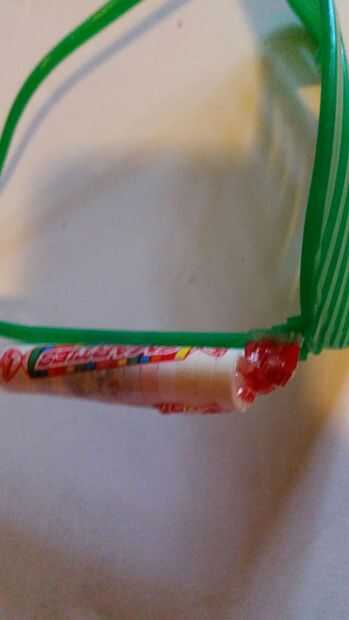 Se trata de disfraces de Halloween de "Residuos tóxicos" de mi hijo Nick. Tenemos la idea de una lata de "Residuos tóxicos" caramelo, descrito como "hazardously sour". Básicamente, el traje es de fieltro amarillo que cubre