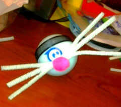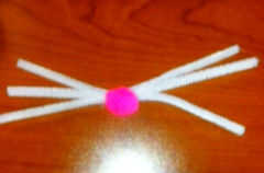 Ahora que tu esfero mira más como un ninja, es importante agregar sus elementos de kitty para hacerle imparable. En primer lugar, tres limpiapipas blanco pegamento y una bola de color de rosa pompones junto con la pistola encoladora para crear los bigotes y un gatito de la nariz. Luego, pegar los bigotes y olfatean el pedazo para rostro de esfero directamente bajo sus ojos.