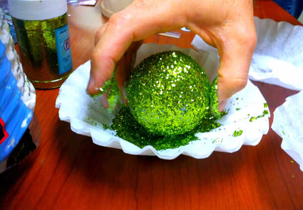 Si tu esfero busca un traje que tiene un poco de chispa y mucho bigote, sugerimos crear un disfraz de rana bigotudo. Para conseguir ese brillo verde que cada rana desea que él o ella tenía, su esfero en pegamento de Elmer de la capa y lo en un montón de brillo verde. Se utilizó un filtro de café para mantener el brillo en su lugar mientras que su robo pal toma un baño de brillo.