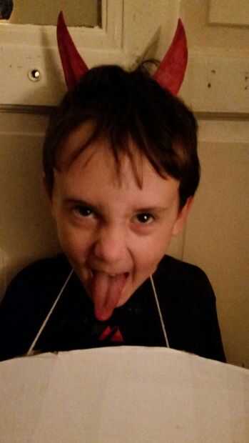 Se trata de disfraces de Halloween de "Residuos tóxicos" de mi hijo Nick.  Tenemos la idea de una lata de "Residuos tóxicos" caramelo, descrito como "hazardously sour".  Básicamente, el traje es de fieltro amarillo que cubre