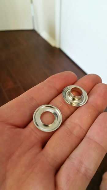 2 - marcar donde quieres los ojales y perfore agujeros para éstos. no necesita más de tres por cada lado y utilicé dos tamaños, pero ninguno funciona. Me ha gustado el look de las pequeñas.