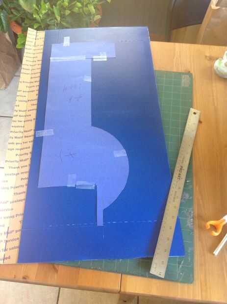 Otra vez, es importante utilizar cartulina para crear plantillas. He creado una plantilla de pierna que hemos probado en mi hijo. Cuando tuvimos el dimensionamiento adecuado, nos llevó a la cartulina.