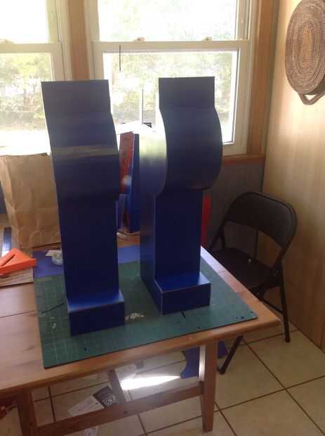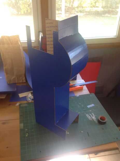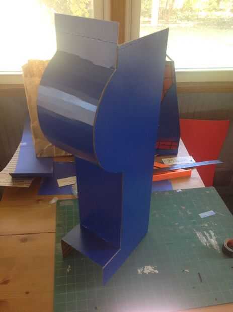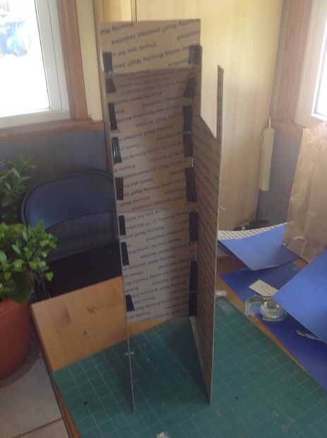 Las piernas están hechas de cartón corrugado regular en lugar de espuma. En realidad, encontré cajas de tablero de USPS eran el tamaño aquí. La razón de esto es la necesidad de hacer la curva en la pierna, que es relativamente fácil con el cartón corrugado, pero parece difícil si no imposible, con núcleo de espuma. El cartón también es más durable que se importa como sus piernas se patear contra la traje aquí.