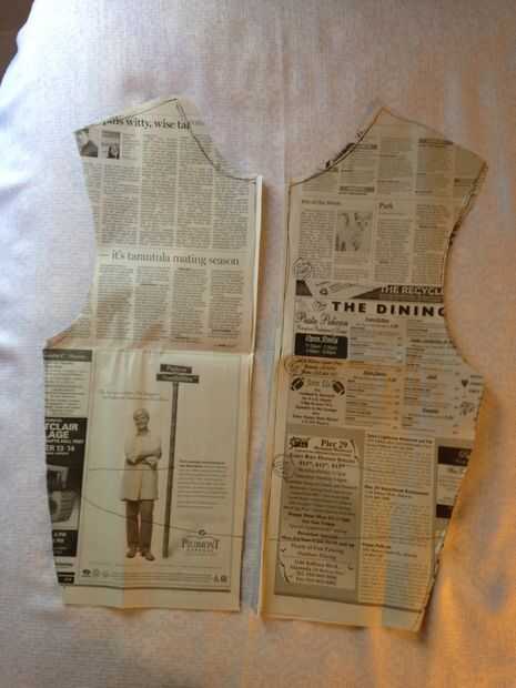 periódico, rollos de papel higiénico, arte papel, pegamento, cinta de adhesiva de color1) tome 6 páginas de un periódico viejo y dibujar un contorno áspero de tu chaqueta de media manga de su camisa y sudadera utilizando como referencia.