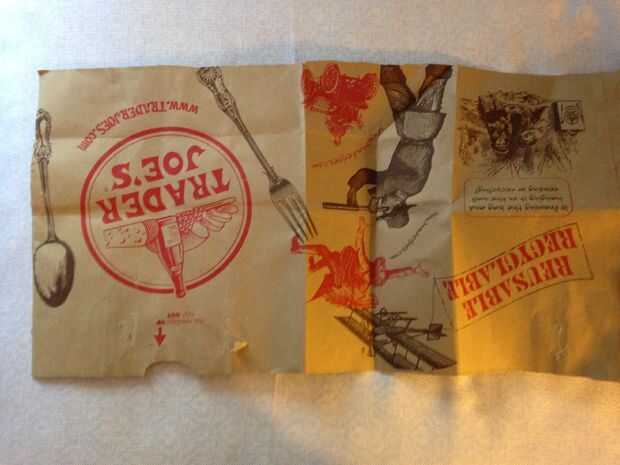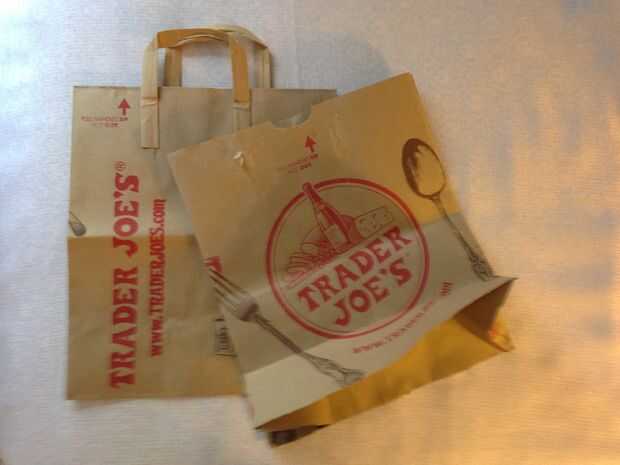 1) quitar las bolsas de papel dos Trader Joe y sacar sus bases.