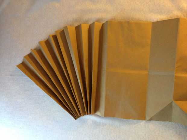 4) pliegue la hoja plana de papel que tienes en el paso 3 haciendo dobleces de Valle (V) y montaña pliega alternadamente (ver imágenes).