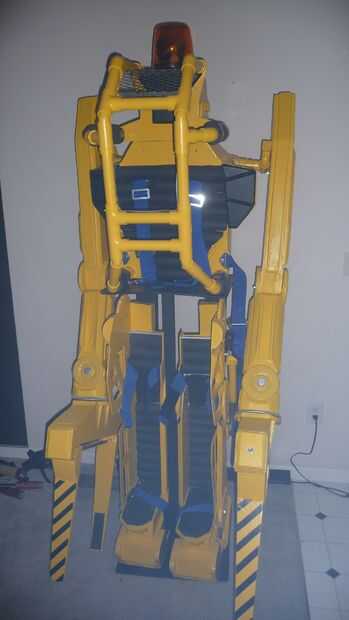 Disfraces de Halloween 2011 de mi hijo. Construido a partir de un casco, papel maché, chaqueta de piel y bolas de madera para los ojos.