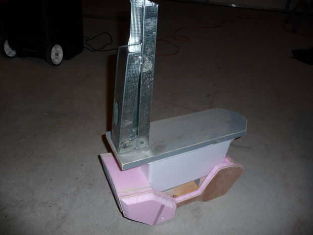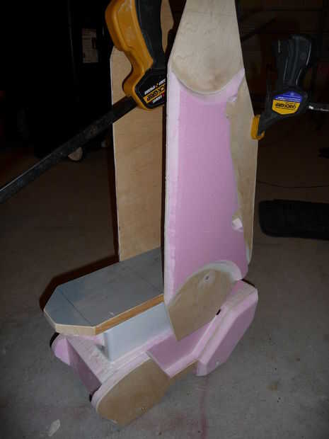 La pierna fue formada de lauan paneles con espuma para detalles adicionales. Las abrazaderas están sosteniendo las piezas de espuma en la parte posterior de la pierna. También puede ver que los huecos en los pies se han llenado con masilla.