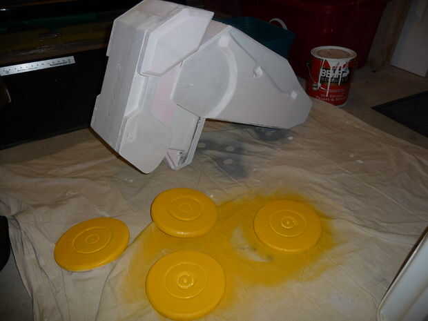 Luego la pierna fue preparada y pintado a spray. Discos de espuma se corte, formados y pintados para ser usado en todas las juntas. No sean muy detalladas, pero ven convincente cuando se ha hecho.
