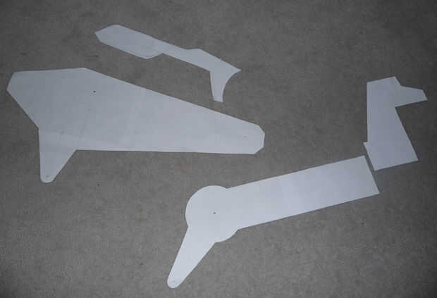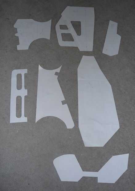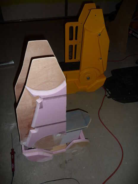Realmente hice plantillas de papel de la espuma grande y lauan piezas antes de hacer la primera etapa. Usando estas plantillas para cada pierna aseguró que saldría idénticos. Más tarde, hice lo mismo haciendo plantillas para los brazos y acaparadores.