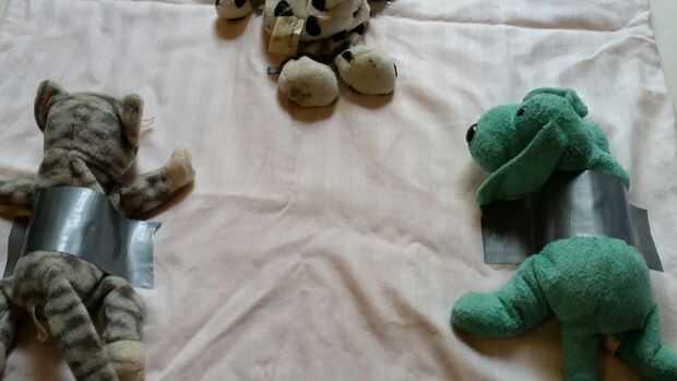 Presentar los perros y gatos y con cinta adhesiva a la funda de almohada.