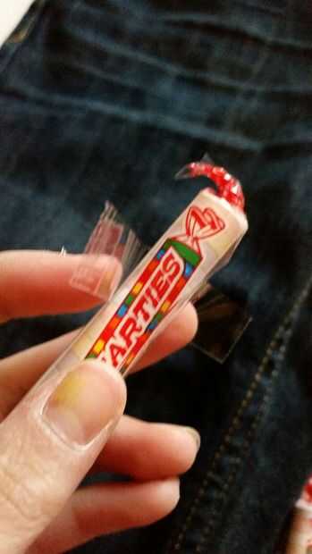 Hey la cinta y poner la cinta uno cada smarty y las pongo en los pantalones. Usted puede poner la en la parte posterior, pero no lo hice.
