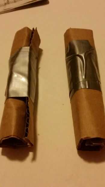 Cortar un cartón de 4 x 4 1/2. Ahora enrollar ellos ambos y fíjelos con duck tape.