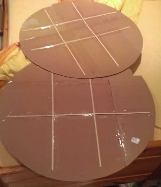 Ahora corte dos círculos de cartón. Desde que no tenía divisor de este tamaño y tenía prisa, terminó en un diámetro de aprox. 60cm :D. También estaba bien pero se podría haber hecho mejor.