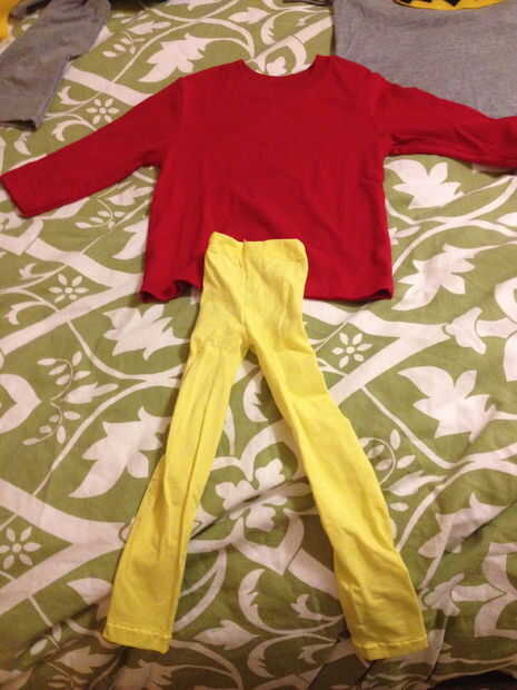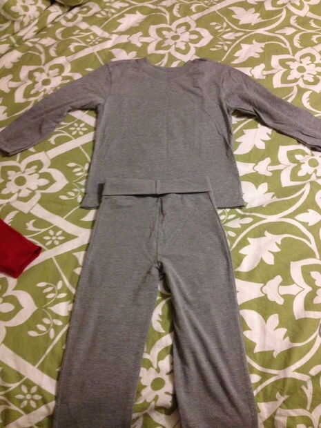 Para la tapa de Batman que compramos una camiseta de manga larga gris y polainas de Wal-Mart. (Las polainas fueron en el Departamento de las chicas, y nuestro hijo es demasiado pequeño para los tamaños, por lo que mamá corrió una costura por fuera de los pantalones para hacerlos más pequeños. Su Batman poco puede o puede no requerir este paso dependiendo de su tamaño.)