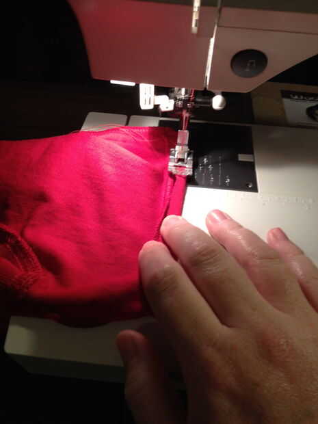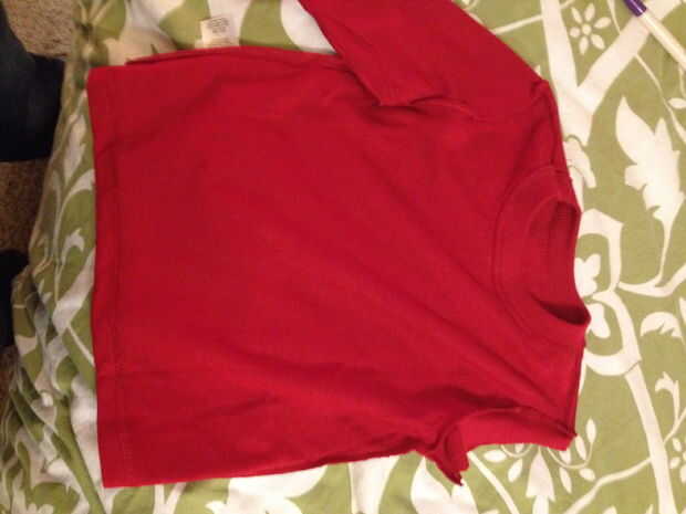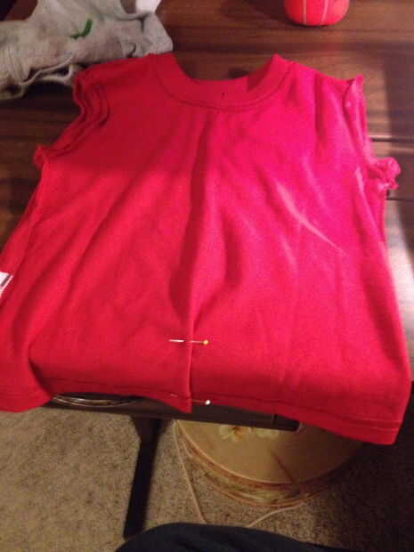 Mangas rojizas de Robin tuvieron que ser quitados primero que comenzaría a ver como un chaleco. Simplemente dio vuelta en aproximadamente una costura de 1/8 de pulgada y coser para que no tenga un borde que podría pelarse. En segundo lugar, nos cubrió una superposición abajo el centro de la camisa y cosido en su lugar por lo que se vería como dos piezas de tela que se unen y sujeción en la parte delantera.