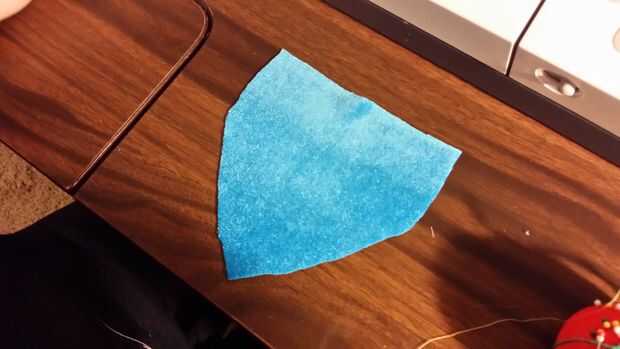 Doblar la tela derecho otra vez y cortar una forma que es de dos pulgadas de ancho, cuatro pulgadas de largo por un lado, y una a dos pulgadas de largo en el otro. (Véase el cuadro. Ya realmente no tiene sentido.)