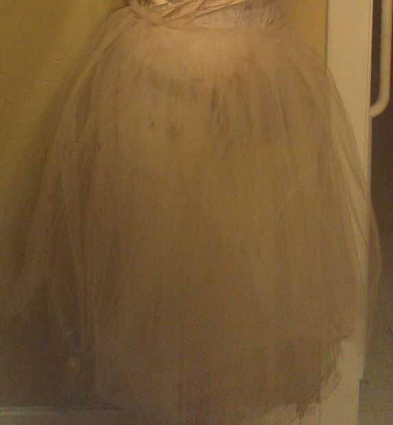 Para crear un aspecto andrajoso al tutu me corte los bordes en la parte inferior y había manchado algunos maquillaje negro y marrón en él.