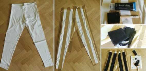 1. Tome un básico par de polainas y poner pone la cinta. Una vez que ha hecho pintura del comienzo.