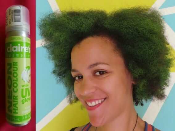 2. ser verde rociando el color de pelo de neón. El color es intenso tan sólo la sombra derecha de verde si tiene el pelo oscuro. Podría ser demasiado neón si eres rubia.