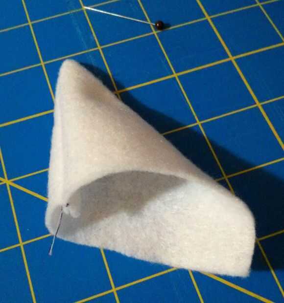 La campana era la parte más difícil. Decidió basar su capilla fuera de una capilla real y hecho más en frente de una campana normal, pero pensé que encajaría mejor que una gran campana disquete. Usé las tres capas de tela para la campana, por lo que correspondería con el cuerpo. También lo rellenas con un poco de bateo para que mantendría su forma. Los dientes se cubrió y luego cosidos a la campana y la parte delantera del cuerpo. Para darles más de un aspecto de diente, me dobla un pedazo cuadrado de fieltro en un triángulo y coser los bordes.