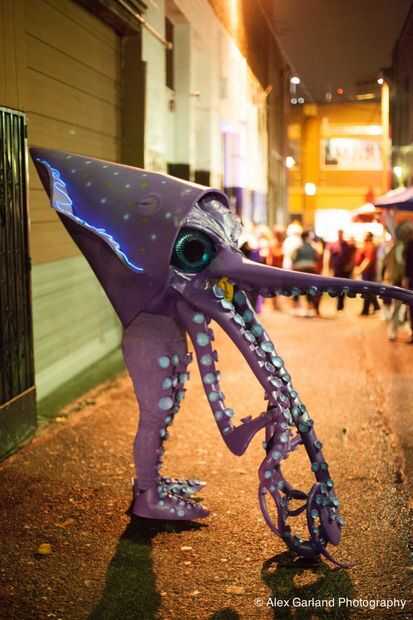 Este año quería un traje que incorpora iluminación y tentáculos así que fui con este híbrido de calamar/sepia. Crédito de la foto: Kelly O.