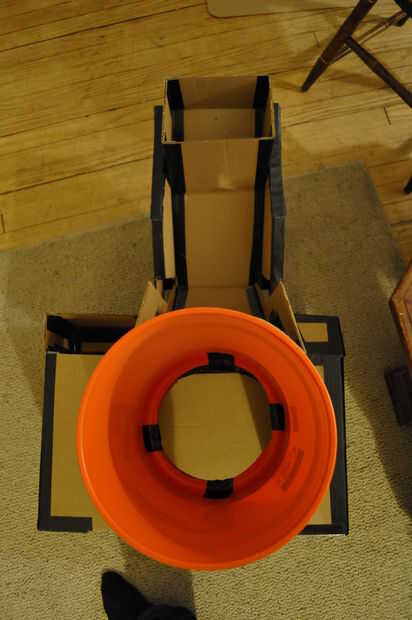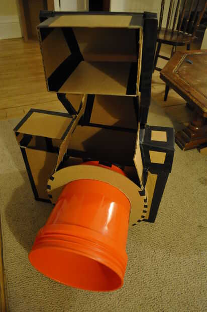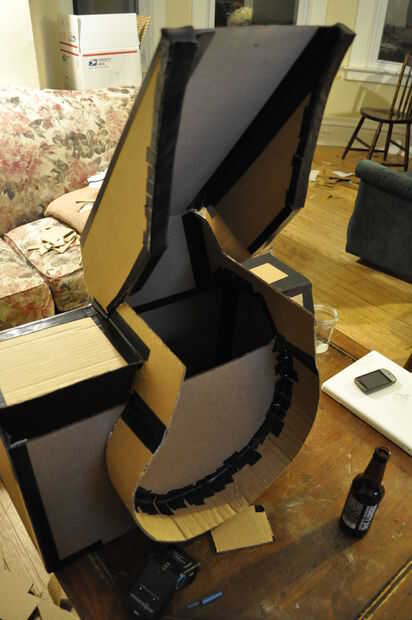 Hice mis lados hueco para que la extensión flash podría ser escondida dentro. Esto también ayuda a soportar todo esto. Dependiendo de su altura, quizás tenga que ajustar sus medidas y probar unas cuantas veces para asegurarse de que la abertura para la cabeza es bastante grande. Tenía suerte y lo consiguió en el primer intento.