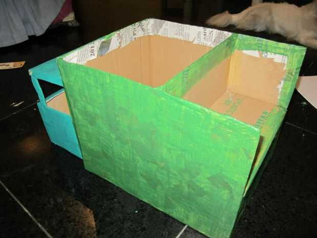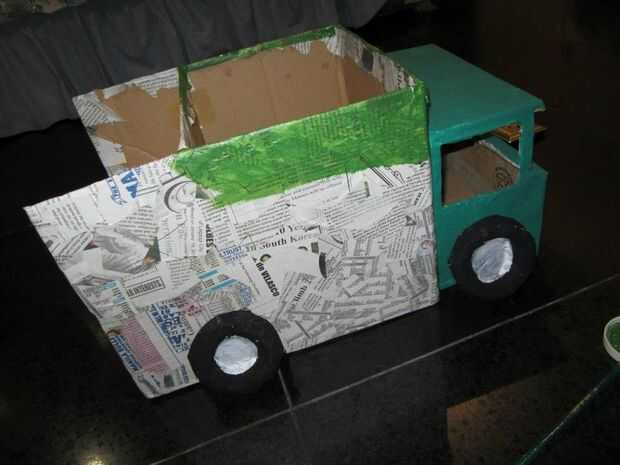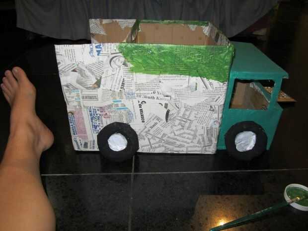 para mi 3 años quería ser camión grave digger para Halloween. He usado 2 medianos cajas, pinturas, placas de espuma de poliestireno, papel de aluminio, un viejo par de luz de los niños zapatos, cintas elásticas (de la cola de luces (desde el árbol de