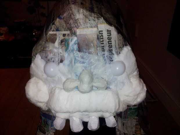 Una vez que todo estaba en su lugar dieron el traje entero 2 capas más de papel maché pero usando papel de seda blanco - esto significó que mi traje sólo necesita una capa de pintura en aerosol para dejar el papel de mostrar a través de.