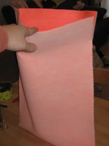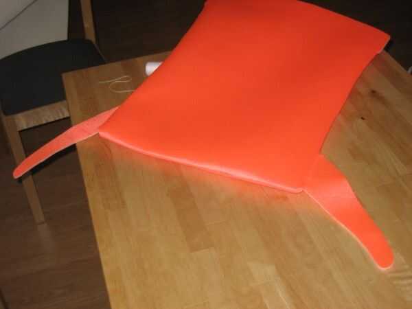 Lo unico imagen es una tela acolchada roja (o naranja) y otra de color de blanco. Recorta una tira de la tela roja con el doble de anchura del bebe y el triple de su altura. Las de seran de recorta tambien dos trozos por desgracia del cohete. Cose la tela formando un saco como el ves en las imagenes.
