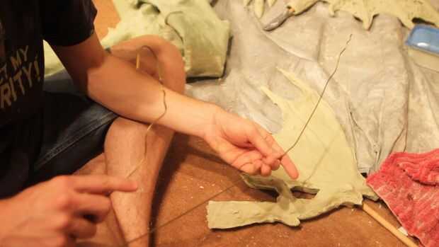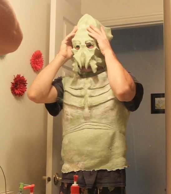 Las piezas de la diferencia que encajan, con como poco la línea de costura como sea posible, fue un poco complicado. Algunas piezas no encajan tan bien como podría tener. La cintura de las piernas, sobre todo, era demasiado grande, y tuve algún exceso de material alrededor y pegue para hacer más apretada. Utiliza pegamento caliente para el bono inicial y luego sellar las costuras con el látex. Una vez tuve suficiente látex en las costuras, era capaz de alisar hacia fuera, y en su mayor parte, las juntas eran bastante suaves.