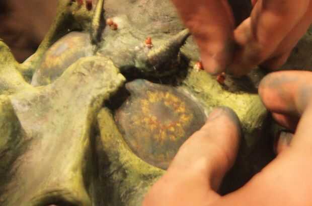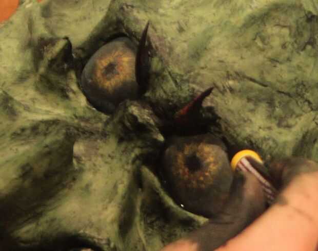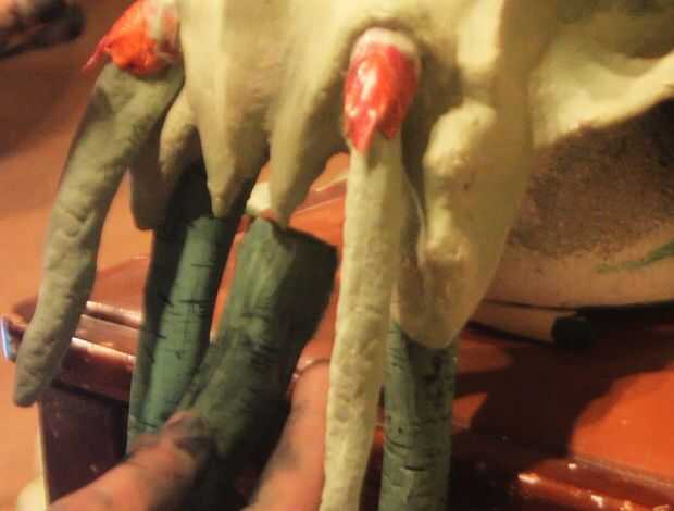 Y un detalle más interesante; Estuve en el supermercado un día y vi algunos cangrejos de río. Sólo mi mente enferma podría pensar "Me pregunto si podría usar algunas garras y piezas de los detalles en el traje?". Seguramente, era capaz de limpiar piezas, guardar las garras, las piernas, pedazos de cuerpo principal y hasta los ojos. Usados con moderación, se agregaron en lugares prominentes, como las crestas del ojo, la base de los tentáculos de la "fosa", puntas de las alas y dedos.