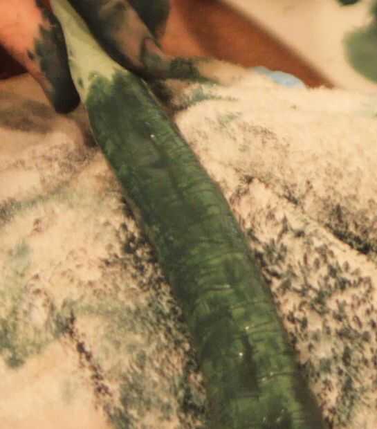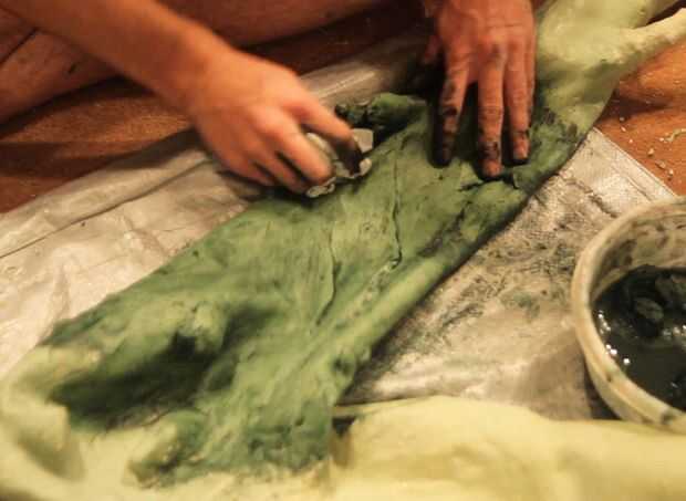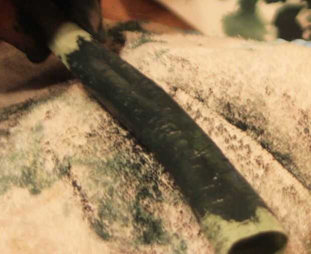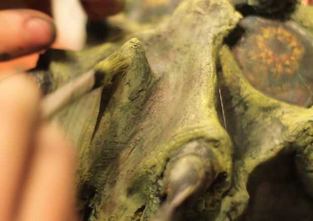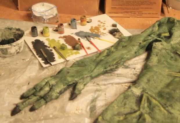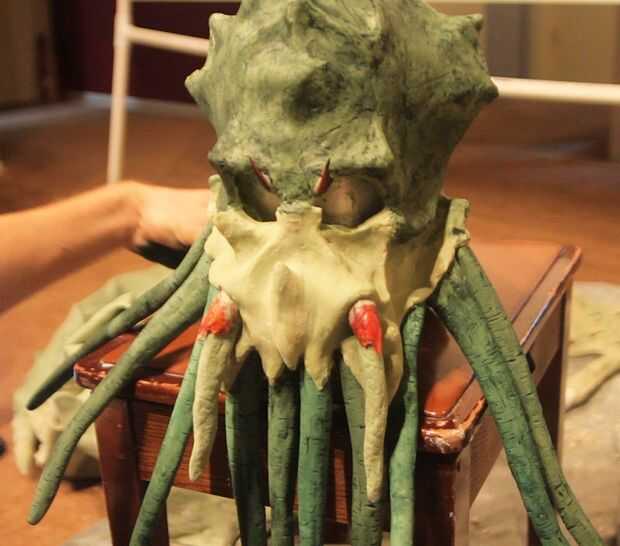 Pintura sobre todo era verde, para seguir la descripción básica de Lovecraft. Entonces la mayor parte de la demanda fue pulido a mano con acrílicos (mezclados con un poco de látex), construcción de resaltados y sombras, experimentando como fui. He añadido lavados de color verde muy oscuro para los detalles pequeños de textura. Algunas manchas de color azul parecía frescos énfasis adicional, y pecas manchas pequeñas de color añade más realismo.