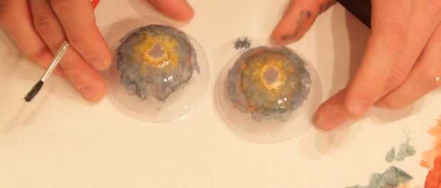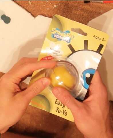 Hice los ojos con piezas de plástico del embalaje de un yoyo tienda de dólar barato. Pinté sobre aquellos que, teniendo los alumnos claro (así que pude ver fuera de ellos) y luego súper pegado en. Claro recubierto con un barniz y una capa de resina brillante y fuerte.
