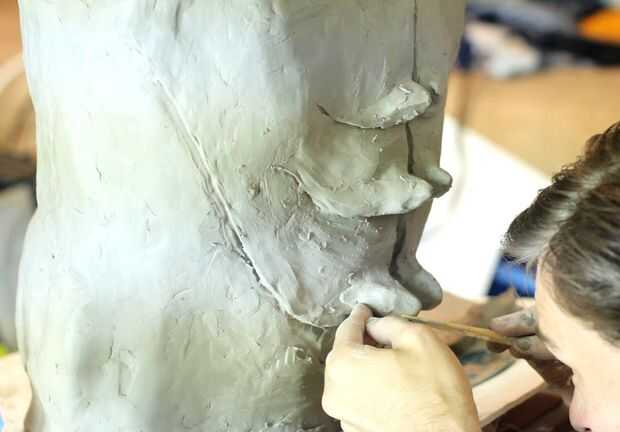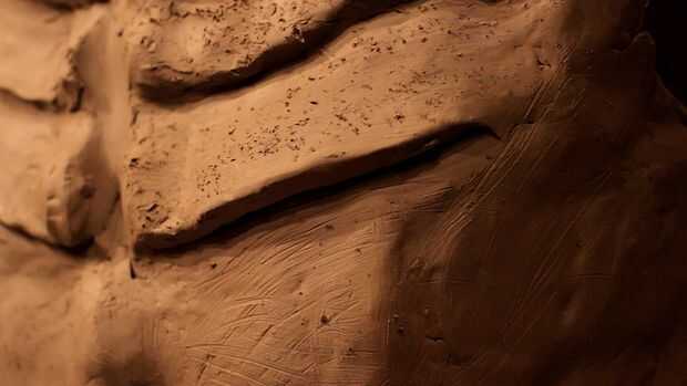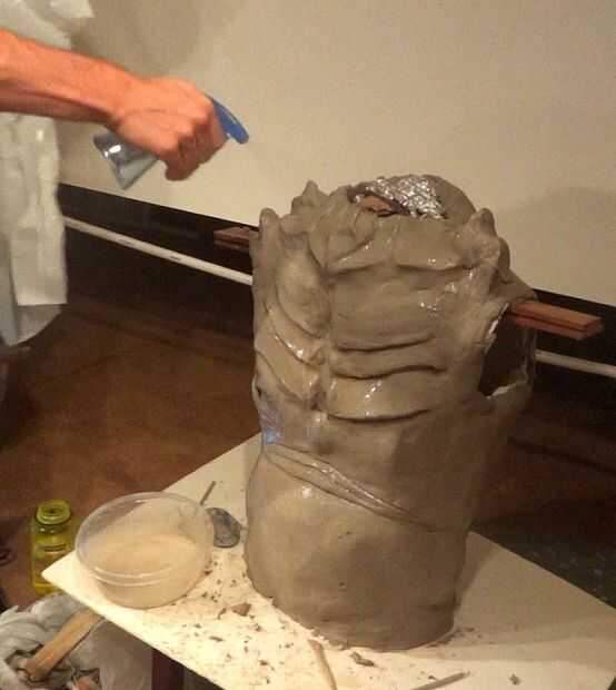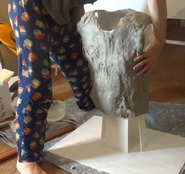 He añadido alguna textura en la escultura; algunas líneas de rayado, arrugadas y pequeñas hendiduras como los poros, usando principalmente un rígido seco trozo de tela. Y entonces un chorro final de Krylon Crystal Clear para sellar la escultura, lista para el moldeado.