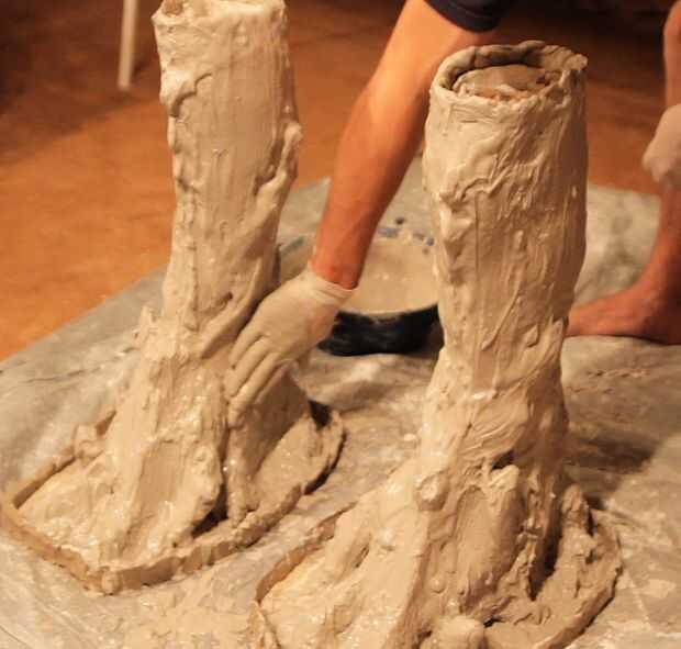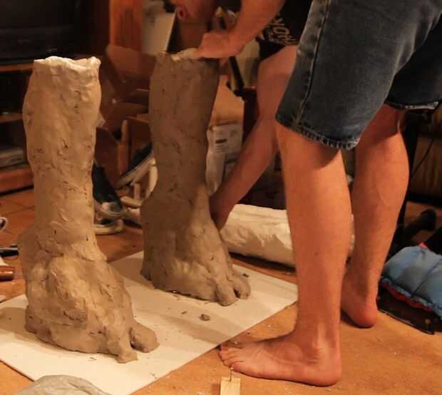 Moldeo era bastante simple para los pies; no tienen que ser moldes en 2 partes (agradables y abiertos en ambos extremos) y más ancho en la parte inferior que en el yeso así que todo exceso superior funcionaría y construir más grueso. Las espinillas eran verticales y no tan fácil construir un grueso, pero algunos lienzo de tela para paredes fuertes. Limpieza fue también smooth(er). Y es muy bueno tener finalmente algunos moldes con un fondo plano que eran fáciles de soporte vertical y el trabajo con.