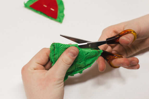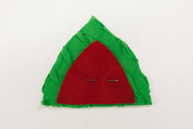 1. Coser la parte de la oreja de fieltro rojo en el centro de la oreja