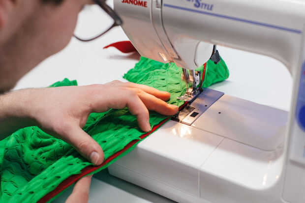 5. Coloque el otro borde recto del cuerpo en la parte superior y coser todo junto.