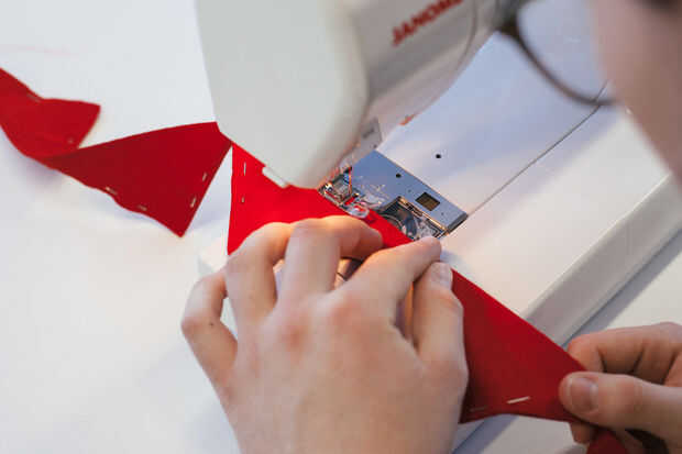 1. Doblar la cinta por la mitad, y luego coser en el pliegue.