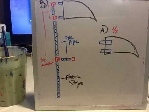 Para la lámina, 4 piezas de cartón y recortar la forma de una lámina. Tallar dos surcos en la cartulina de 1 1/2 pulgadas de profundidad por lo que 2 piezas de PVC de 3 pulgadas se deslice pulg (foto A)... Bondo la hoja cartulina entera.
