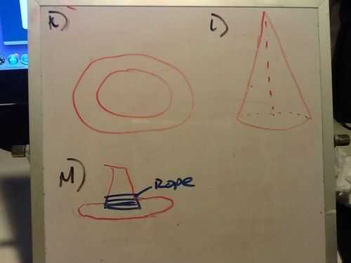 Para el borde, utilice un trozo de cartón y corte un "O" a la cabeza. no tiene que ser perfecto, como imperfecciones agregar carácter (Pic K)... cubrir la cosa entera con su tela marrón oscuro. Coser un cono con la tela marrón oscuro (foto L) y pegar en la llanta. Por último, tomar cierta cuerda de la soga y envolver un par de veces alrededor de la base del cono (foto M)