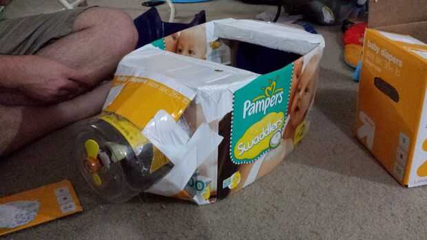 Para dar una mejor forma empujó a los lados y utilizar enrollada pedazo de caja de cartón como un refuerzo en el frente y la parte posterior del cuerpo.