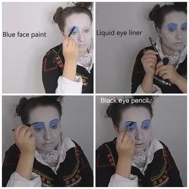 Aplicar pintura de cara azul a mis ojos y la frente.