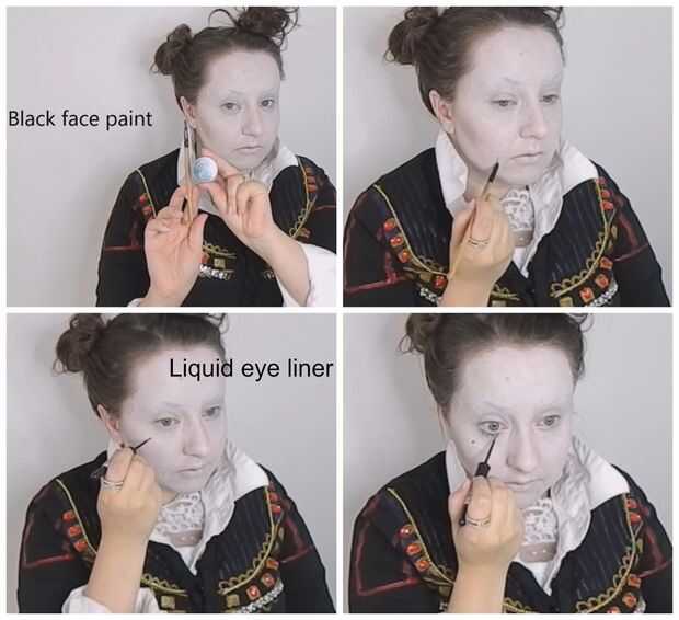 Hice pequeños hoyuelos a mis mejillas con pintura negra.