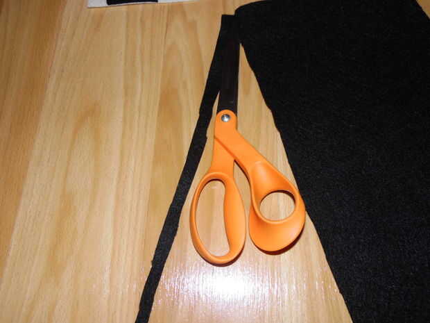Corte ranuras en las esquinas derecha e izquierdas, así que usted puede atar. Hacer la cinta de fieltro negro. Simplemente corte una hebra.