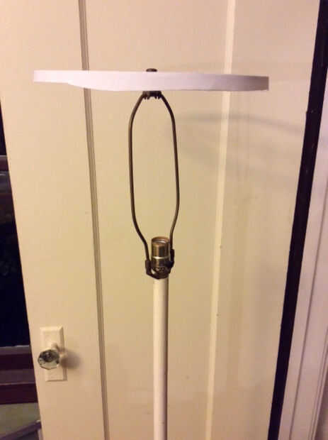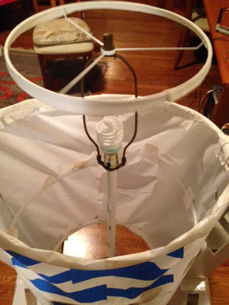 (O una lámpara de pie, si usted tenía uno. No lo hacía, así que fui a la buena voluntad y recoger una vieja lámpara con un golpe encima de sombra e hizo un soporte de PVC más, puesto que todavía tengo un montón de en el garaje.)