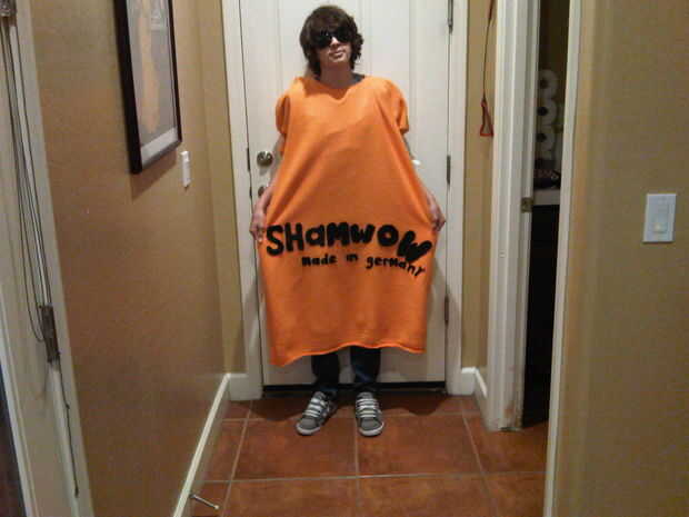 yo estaba atado por tiempo y dinero para un disfraz de Halloween, así que decidí ir de vieja escuela y ser creativo con un par de cajas, papel de construcción y sharpie. Si eres capaz, las cajas de costura juntos hace el traje mucho más durable.Paso